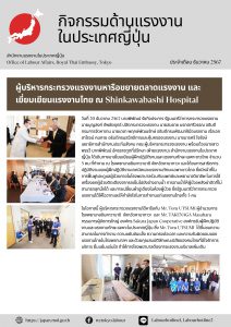 ผู้บริหารกระทรวงแรงงานหารือขยายตลาดแรงงานและตรวจเยี่ยมแรงงานไทย ณ โรงพยาบาล Shinkawabashi