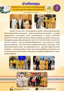 ฝ่ายแรงงานฯ เข้าร่วมงานวันชาติ ณ โรงแรมอนันตรา ดาวน์ทาวน์ เมืองดูไบ
