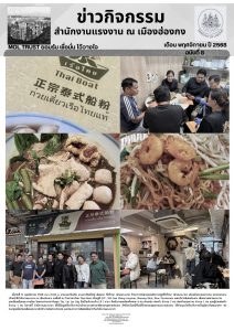 สำนักงานแรงงาน ณ เมืองฮ่องกง ร่วมพิธีบำเพ็ญกุศลทักษิณานุประทาน อุทิศถวายพระราชกุศลแด่สมเด็จพระนางเจ้าสิริกิติ์ พระบรมราชินีนาถ พระบรมราชชนนีพันปีหลวง เสด็จสวรรคตครบปัณรสมวาร (15 วัน) ณ วัดพุทธธรรมาราม เขตหยุ่นหลอง)