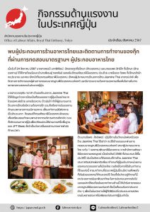สนร.ญี่ปุ่น อัครราชทูตที่ปรึกษา (ฝ่ายแรงงาน) พบผู้ประกอบการร้านอาหารไทยและติดตามการทำงานของกุ๊กที่ผ่านการทดสอบมาตรฐานฯ ผู้ปรุงอาหารไทย