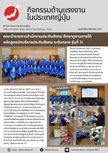 สนร.ญี่ปุ่น อัครราชทูตที่ปรึกษา (ฝ่ายแรงงาน) นางสาวพรรวี นาคพิพัฒน์ ให้การต้อนรับคณะข้าราชการและเจ้าหน้าที่ และผู้เข้ารับการฝึกอบรมหลักสูตร นักบริหารประกันสังคม ระดับกลาง รุ่นที่ 31 และ 32 ระหว่างวันที่ 26 – 28 สิงหาคม 2567