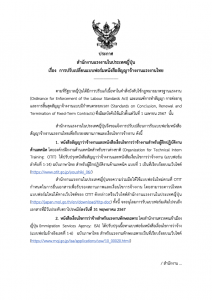 ประกาศสำนักงานแรงงานในประเทศญี่ปุ่น เรื่อง การปรับเปลี่ยนแบบฟอร์มหนังสือสัญญาจ้างงานแรงงานไทย