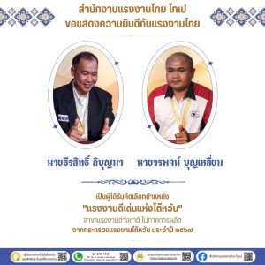 สนร. เกาสง ขอแสดงความยินดีและเชิดชูเกียรติ แรงงานไทย ที่ได้รับรางวัลแรงงานดีเด่นประจำปี พ.ศ. 2567 2 ราย คือ 1. นางสาวสลิลดา นาคคำ และ 2. นายพสิษฐ์ ครุฑจันทร์