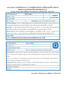 สนร.ฮ่องกง เชิญชวนผู้สนใจลงทะเบียนเข้ารับการทดสอบมาตรฐานฝีมือสาขาผู้ประกอบอาหารไทย (พ่อครัว-แม่ครัว) ระดับ 1-2
