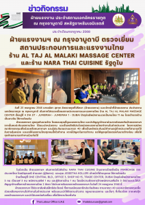 ฝ่ายแรงงานฯ ณ กรุงอาบูดาบี ตรวจเยี่ยม สถานประกอบการและแรงงานไทย ร้าน AL TAJ AL MALAKI MASSAGE CENTER และร้าน NARA THAI CUISINE รัฐดูไบ