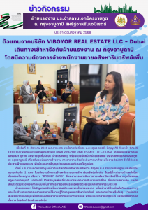 ตัวแทนจากบริษัท VIBGYOR REAL ESTATE LLC – Dubai เดินทางเข้าหารือกับฝ่ายแรงงาน ณ กรุงอาบูดาบี โดยมีความต้องการจ้างพนักงานขายอสังหาริมทรัพย์เพิ่ม