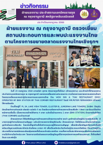 ฝ่ายแรงงาน ณ กรุงอาบูดาบี ตรวจเยี่ยม สถานประกอบการและพบปะแรงงานไทย ณ รัฐดูไบ ตามโครงการขยายตลาดแรงงานไทยเชิงรุกฯ