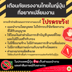 เตือนภัยแรงงานไทยในประเทศญี่ปุ่นที่อยากเปลี่ยนงาน