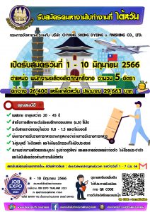 สนร.ไทเป ประกาศ รับสมัครพนักงานผลิตผลิตภัณฑ์สิ่งทอ จำนวน 5 อัตรา