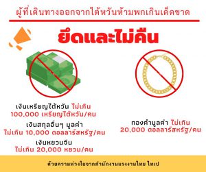 สนร. ไทเป ประชาสัมพันธ์ห้ามพกเงินสด/ทองคำเกินมูลค่าที่กรมศุลกากรกำหนดออกนอกไต้หวัน