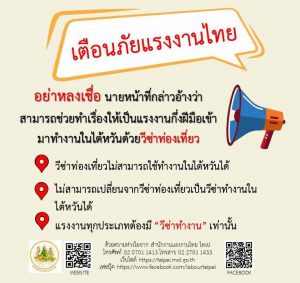 สนร. ไทเป แจ้งเตือนแรงงานอย่าหลงเชื่อนายหน้าเดินทางมาทำงานด้วยวีซ่าท่องเที่ยว
