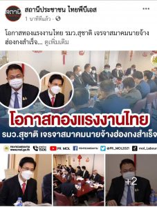 รัฐบาลไทย-ข่าวทำเนียบรัฐบาล-นายกฯ ตู่ มอบ รมว.สุชาติ เจรจาขยายตลาดแรงงานฝีมือฮ่องกง หวังโกยเงินเข้าประเทศ (thaigov.go.th)