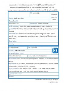 กรมแรงงานฮ่องกง ประชาสัมพันธ์ตำแหน่งงานว่าง **สำหรับผู้ที่ได้รับอนุญาตให้ทำงานในฮ่องกง**