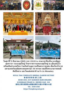 สนร. ฮ่องกง ร่วมทำบุญถวายเป็นพระราชกุศล เนื่องในวโรกาสมหามงคลวันเฉลิมพระชนมพรรษา 90 พรรษา