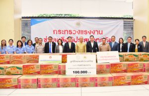 ปลัดกระทรวงแรงงาน ร่วมคณะ รมว.แรงงาน รับมอบ ผลิตภัณฑ์บะหมี่กึ่งสำเร็จรูปจากมูลนิธิสแตนเลย์ประเทศไทย ให้กระทรวงแรงงานนำไปช่วยเหลือผู้ประสบภัยน้ำท่วม