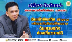 ปลัดฯ“ไพโรจน์”พบหัวหน้าส่วนในสังกัด จ.สงขลา เดินหน้าอัพสกิล สร้างงาน หลักประกันสังคมให้แรงงาน ดันเศรษฐกิจท่องเที่ยวภาคใต้