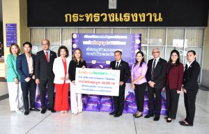 เลขารัฐมนตรี อารีฯ ต้อนรับผู้บริหารบริษัท แปซิฟิค ครอส ประกันสุขภาพ จำกัด (มหาชน) สนับสนุนถุงยังชีพให้กระทรวงแรงงานนำไปช่วยเหลือพี่น้องแรงงานที่ประสบภัย