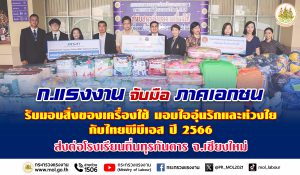 ก.แรงงาน จับมือภาคเอกชน รับมอบสิ่งของเครื่องใช้ มอบไออุ่นรักและห่วงใยกับไทยพีบีเอส ปี 2566 ส่งต่อโรงเรียนถิ่นทุรกันดาร จ.เชียงใหม่