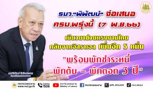 รมว.”พิพัฒน์” จ่อเสนอ ครม.พรุ่งนี้ (7 พ.ย.66) เยียวยาช่วยแรงงานไทยกลับจากอิสราเอล เพิ่มอีก 5 หมื่น พร้อมพักชำระหนี้ พักต้น – พักดอก 3 ปี/Labour Minister Aims to Propose Additional Support Measures for Thai Workers Returning from Israel to the Cabinet Tomorrow (November 7, 2023)