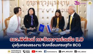 รมว.พิพัฒน์ กระชับความร่วมมือ ILO มุ่งคุ้มครองแรงงาน ขับเคลื่อนเศรษฐกิจ BCG/Labour Minister Strengthens ILO Cooperation Aiming at Labour Protection and Driving the BCG Economy