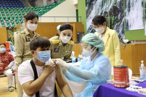 รมว.เฮ้ง มอบ ‘ที่ปรึกษา’ ‘โฆษก’ลงพื้นที่เยี่ยมให้กำลังใจผู้ประกันตนฉีดวัคซีนบูสต์เข็ม 3 ที่สนามไทย – ญี่ปุ่น ดินแดง