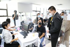 ผช.รมว.แรงงาน ตรวจเยี่ยมศูนย์รับเรื่องราวร้องทุกข์ (โควิด-19) สำนักงานประกันสังคม