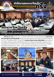 แรงงานจังหวัดตรัง ร่วมการประชุมคณะกรรมการบริหารงานจังหวัดแบบบูรณาการ (ก.บ.จ.) จังหวัดตรัง ครั้งที่ 7/2568