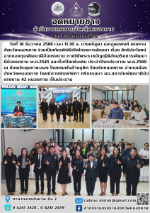 สำนักงานแรงงานจังหวัดกระบี่ ลงพื้นที่บูรณาการตรวจสถานประกอบการในพื้นที่ตามแผนฏิบัติการป้องกันการบังคับใช้แรงงาน หรือบริการและการค้ามนุษย์ด้านแรงงาน ประจำปีงบประมาณ พ.ศ. 2569