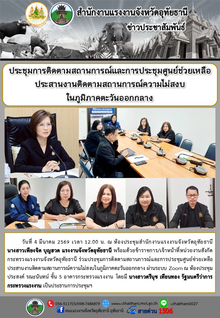 แรงงานสมุทรสงคราม ร่วมประชุมคณะกรรมการศูนย์ช่วยเหลือประสานงานติดตามสถานการณ์ความไม่สงบในภูมิภาคตะวันออกกลาง ครั้งที่ 2/2569