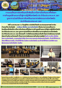 สรจ.ตรัง จัดอบรมโครงการขับเคลื่อนกลไกเชิงนโยบายในการป้องกันและแก้ไขปัญหาการค้ามนุษย์ด้านแรงงานไปสู่การปฏิบัติจังหวัดตรัง ประจำปีงบประมาณ พ.ศ. 2567 บูรณาการร่วมกับโครงการขับเคลื่อนงานอาสาสมัครแรงงานจังหวัดตรัง ประจำปีงบประมาณ พ.ศ.2567