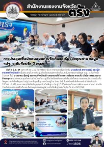 5 เสือแรงงานตรัง ร่วมการประชุมศูนย์ช่วยเหลือประสานงานติดตามสถานการณ์ความไม่สงบในตะวันออกกลาง ครั้งที่ 2/2569
