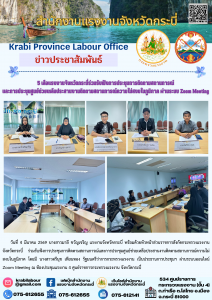 5 เสือแรงงานจังหวัดกระบี่ร่วมรับฟังการประชุมการติดตามสถานการณ์ และการประชุมศูนย์ช่วยเหลือประสานงานติดตามสถานการณ์ความไม่สงบในภูมิภาค ผ่านระบบ Zoom Meeting