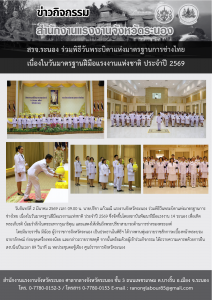 สรจ.ระนองร่วมพิธีวันพระบิดาแห่งมาตรฐานการช่างไทย เนื่องในวันมาตรฐานฝีมือแรงงานแห่งชาติ ประจำปี 2569