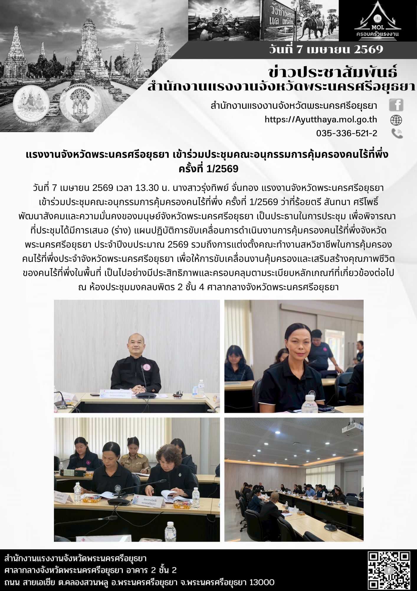 แรงงานจังหวัดพระนครศรีอยุธยา เข้าร่วมประชุมคณะอนุกรรมการคุ้มครองคนไร้ที่พึ่ง ครั้งที่ 1/2569