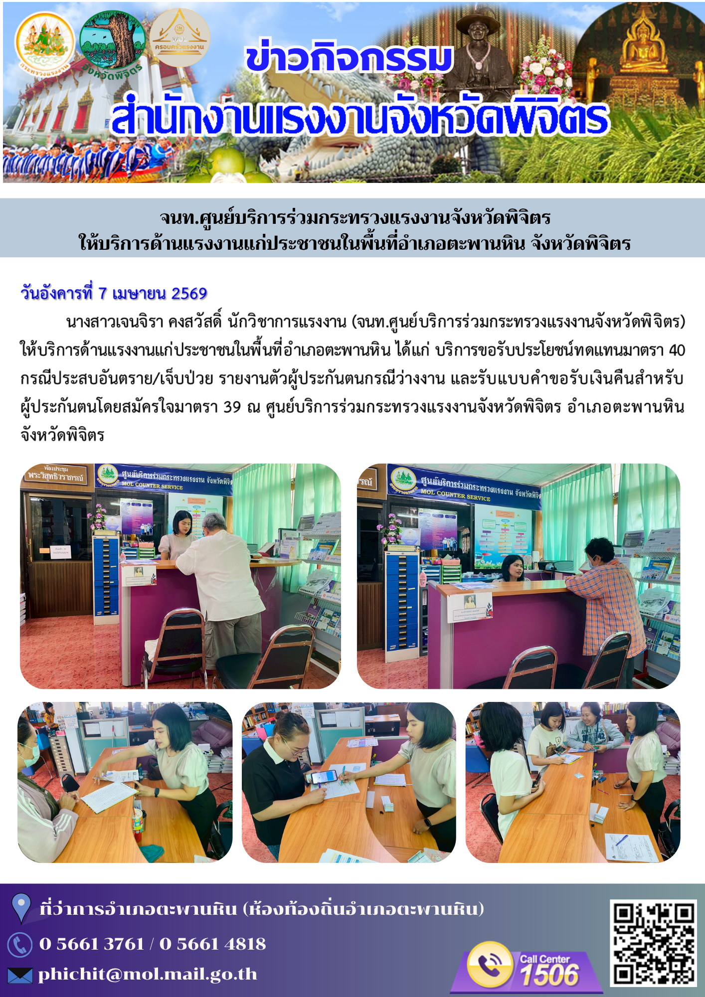 “เจ้าหน้าที่ศูนย์บริการร่วมกระทรวงแรงงานจังหวัดพิจิตร ให้บริการประชาชน”