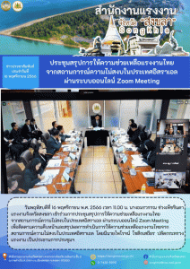 สรจ.สงขลา เข้าร่วมประชุมสรุปการให้ความช่วยเหลือแรงงานไทย จากสถานการณ์ความไม่สงบในประเทศอิสราเอล ผ่านระบบออนไลน์ Zoom Meeting