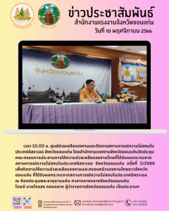 ศูนย์ช่วยเหลือแรงงานไทยที่ได้รับผลกระทบจากสถานการณ์ความไม่สงบในประเทศอิสราเอล จังหวัดขอนแก่น จัดประชุมฯ ครั้งที่ 2/2566