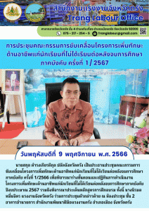สรจ.ตรัง ร่วมการประชุมคณะกรรมการขับเคลื่อนโครงการเพิ่มทักษะด้านอาชีพแก่นักเรียนที่ไม่ได้เรียนต่อหลังจบการศึกษาภาคบังคับ ครั้งที่ 1/2567