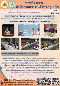 สรจ.สุโขทัย เข้าร่วมประชุมหุ้นส่วนการพัฒนาระหว่างกระทรวงมหาดไทยและองค์การสหประชาชาติเพื่อการพัฒนาอย่างยั่งยืน (MOI-UN Partnership towards Sustainable Thailand through SDG Localizaion)
