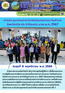 สรจ.ตรัง จัดการประชุมแกนนำอาสาสมัครแรงงานระดับตำบลจังหวัดตรัง ประจำปีงบประมาณ พ.ศ. 2567