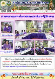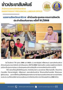 สรจ.สตูล จัดประชุมหัวหน้าส่วนราชการสังกัดกระทรวงแรงงานจังหวัดสตูล ประจำเดือนตุลาคม 2566