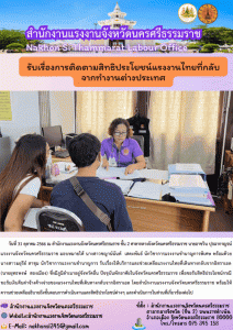 สรจ.นครพนม ให้บริการรับคำร้องของแรงงานกรณีการติดตามสิทธิประโยชน์แรงงานไทยในต่างประเทศ
