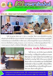 สรจ.พังงา เข้าร่วมประชุมเกี่ยวกับแนวทางการดำเนินงานขอรับสิทธิประโยชน์ของแรงงานไทยที่กลับจากอิสราเอล ผ่านระบบ Zoom