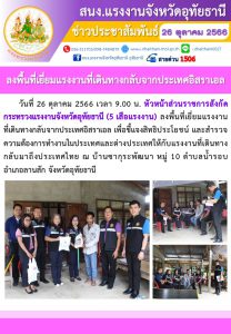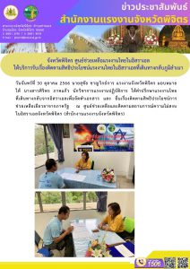 สรจ.พิจิตร ศูนย์ช่วยเหลือแรงงานไทยในอิสราเอล ให้บริการรับเรื่องติดตามสิทธิประโยชน์แรงงานไทยในอิสราเอลที่เดินทางกลับภูมิลำเนา