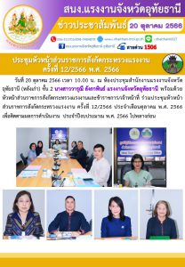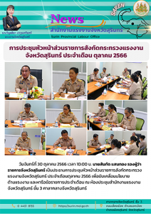 การประชุมหัวหน้าส่วนราชการสังกัดกระทรวงแรงงานจังหวัดสุรินทร์ ประจำเดือน ตุลาคม 2566
