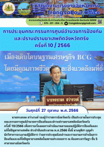สรจ.ตรัง ร่วมการประชุมคณะกรรมการศูนย์อำนวยการป้องกันและปราบปรามยาเสพติดจังหวัดตรัง ครั้งที่ 10/2566