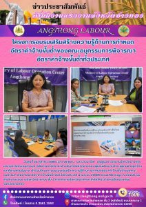 สรจ.อ่างทอง เข้าร่วมโครงการอบรมเสริมสร้างความรู้ด้านการกำหนด อัตราค่าจ้างขั้นต่ำของคณะอนุกรรมการพิจารณา อัตราค่าจ้างขั้นต่ำทั่วประเทศ