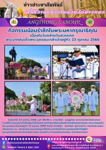 สรจ.อ่างทอง ร่วมกิจกรรมน้อมรำลึกในพระมหากรุณาธิคุณ เนื่องในวันคล้ายวันสวรรคต พระบาทสมเด็จพระจุลจอมเกล้าเจ้าอยู่หัว 23 ตุลาลม 2566