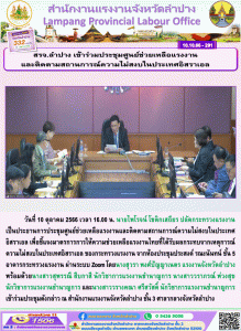 สรจ.ลำปาง เข้าร่วมประชุมศูนย์ช่วยเหลือแรงงานและติดตามสถานการณ์ความไม่สงบในประเทศอิสราเอล