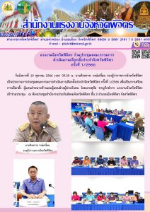 สรจ.จังหวัดเพชรบูรณ์ จัดประชุมศูนย์ช่วยเหลือแรงงานและติดตามสถานการณ์การสู้รบในอิสราเอล จังหวัดเพชรบูรณ์ ครั้งที่ 1 ประจำปีงบประมาณ 2566
